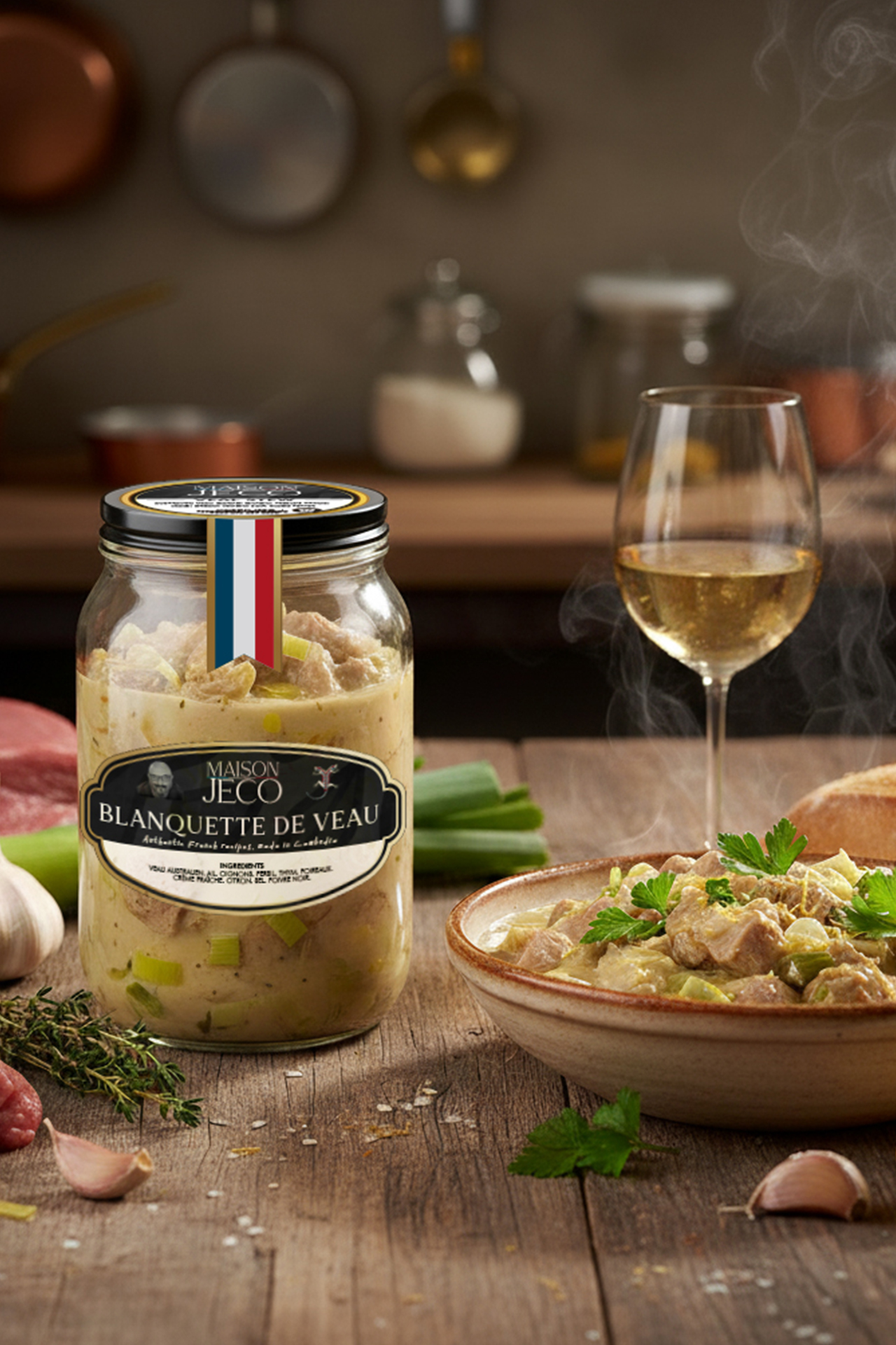 We create ready-to-eat gourmet dishes inspired by classic French cuisine: pâtés, mousses, rillettes, and slow-cooked traditional recipes such as Boeuf Bourguignon, Petit Salé aux Lentilles, and our signature Cassoulet du Cambodge.
